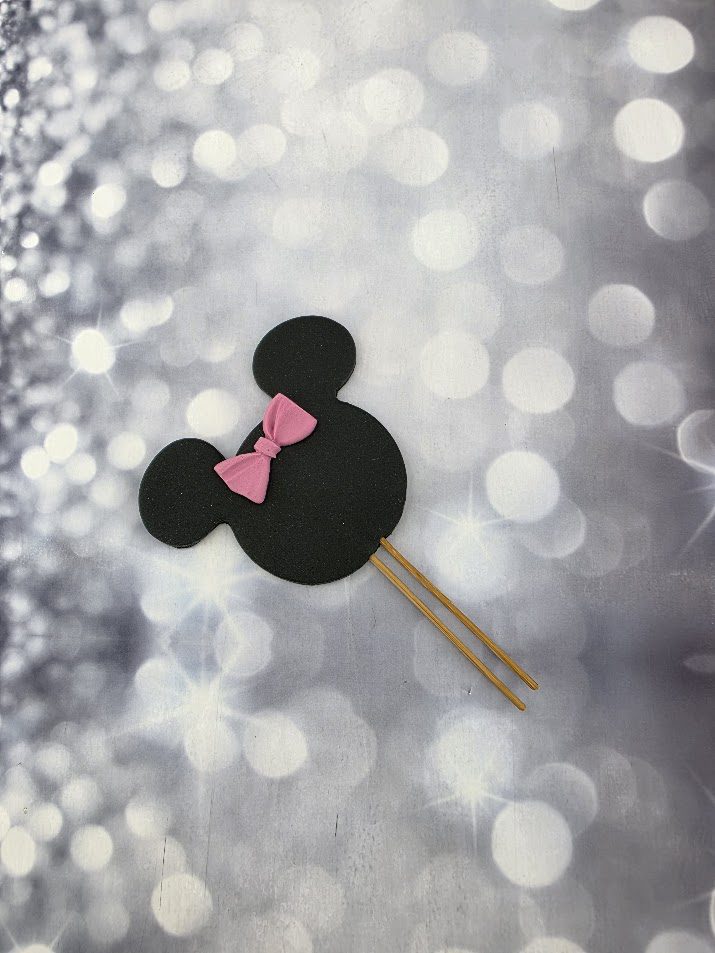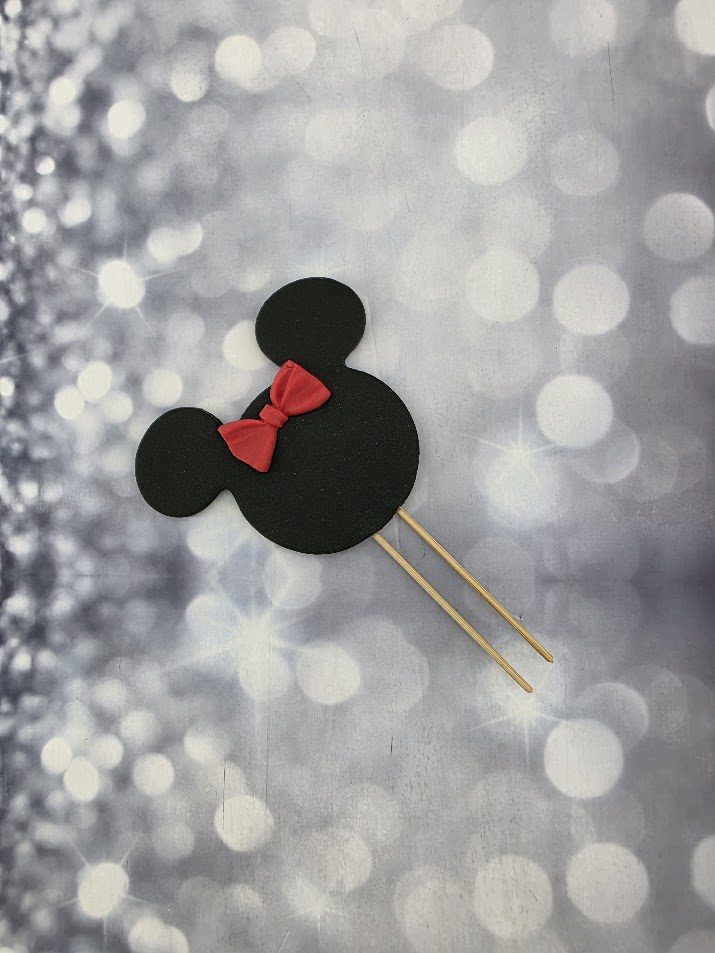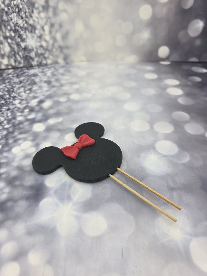 קישוט לעוגה אוזניים מיני מאוס שחור גדול פופיון אדום – אכיל לעוגה מבצק סוכר, גודל 8 ס"מ. מוצר מושלם לעיטור העוגה מגיע עם קיסם ניתן להעמיד על גבי עוגה או קאפקייקס