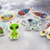 8 יחידות של דיסקיות עם תמונות כוכבי לכת, קוטר 3 ס"מ