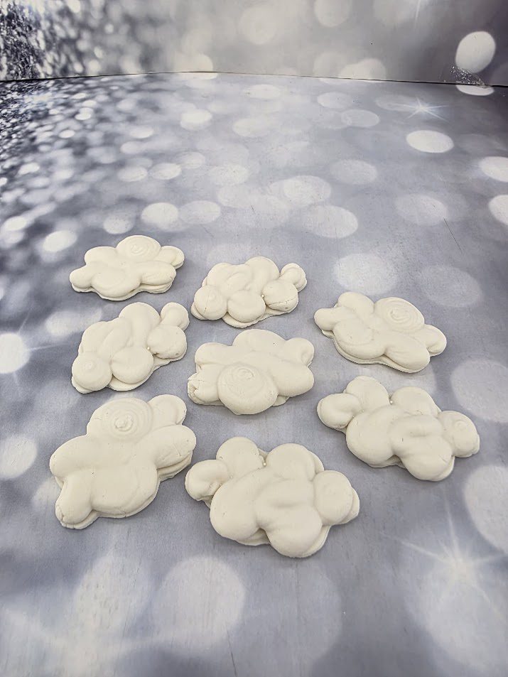 8 יחידות עננים , גודל 4 ס"מ על 3 ס"מ לערך, מסוכר בעבודת יד, קישוט אכיל לעוגה